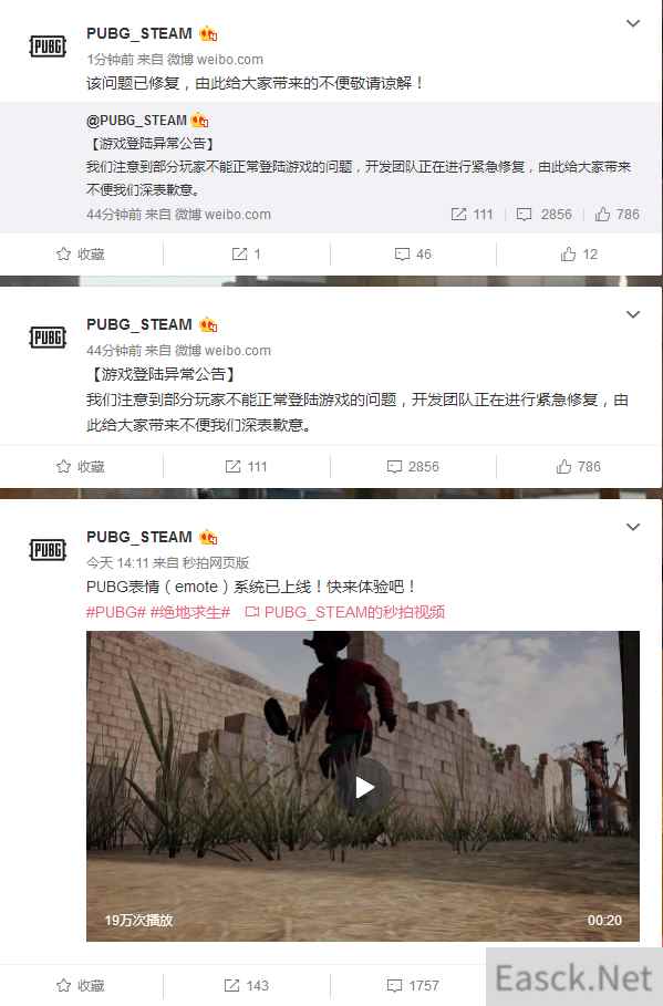 更无语的是,更新后进入游戏又出现了很多问题,部分玩家不能正常登陆游戏,甚至出现匹配到6排、7排的情况,更有一个地图进了128个人,导致二十多个人坐不上飞机的尴尬情况。 对此,《绝地求生》官方微博又一次向大家道歉,目前官方表示问题已修复。