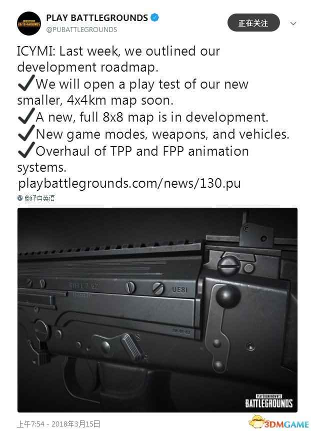 ·我们将很快开放我们的全新小型4x4公里地图的测试。 ·新的完整的8x8地图正在开发中。 ·新的游戏模式、武器和车辆。 ·推出TPP和FPP动画系统。