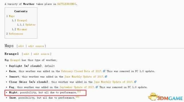 《绝地求生》的维基百科中也提到了未来可能在游戏中加入黑夜模式和雪天模式,如果这次官方所说的新模式就是黑夜模式,那游戏的可玩性将极大提高。