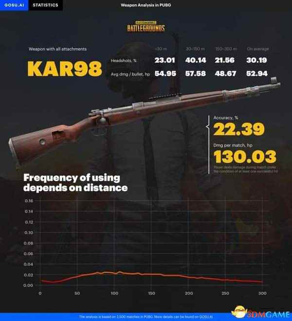 一度被称为“烧火棍”的98K的平均爆头率为30.19%,平均三枪中不到一枪的概率实在是不算高,不过谁有能抵住一击必杀的诱惑呢?