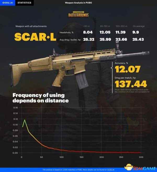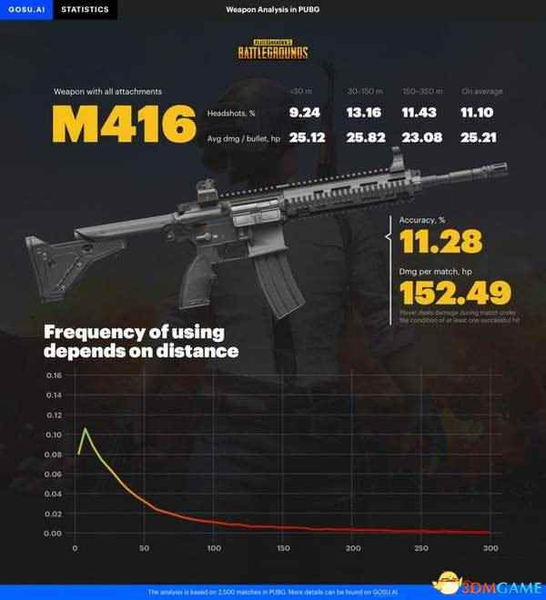 其他几把5.56毫米的枪中,爆头率最高的是被称为“激光枪”的M416。与此同时,M416也是一局里平均造成伤害最高的步枪,达到了152.49。M4不愧为版本最强的步枪。