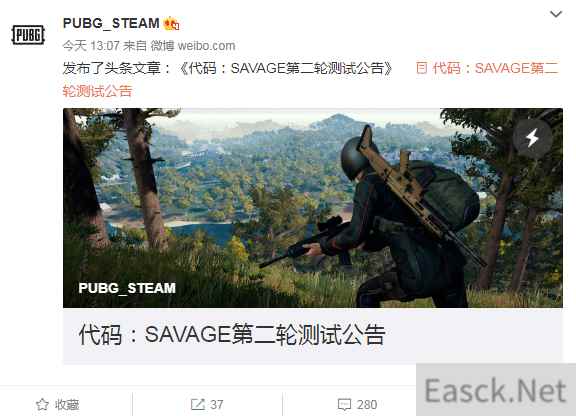 《绝地求生》Steam微博日前发布了新动态,《绝地求生》新地图代码:SAVAGE第二轮测试即将开启,玩家可以北京时间本周六下午8点至下周二下午8点时段内申请测试码,新地图开放时间为4月17日-4月19日,开始和结束时间均为上午9点。 官方微博: