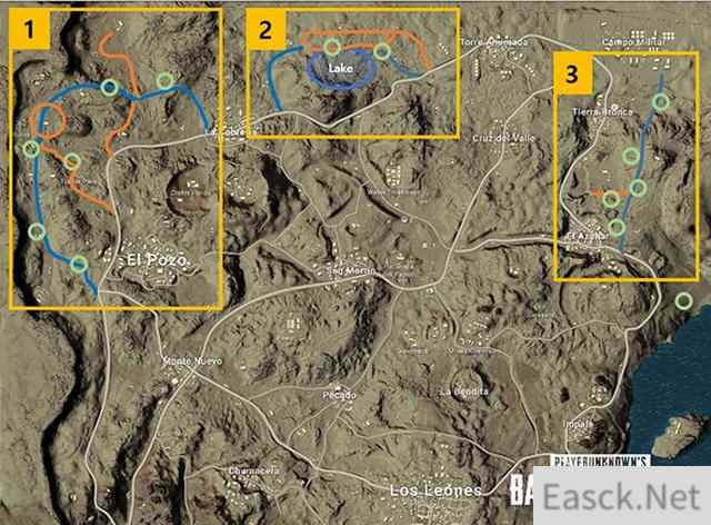 Miramar地图的布局也有所改变。现在北部有了一个新绿洲,西北部有了一个新村庄,并加入了更多的公路、小道和汽车,下面的地图显示了具体的改动。