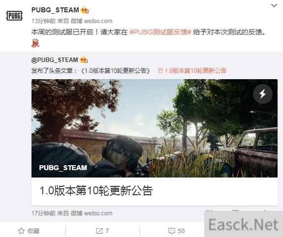 公告原文: 玩家们大家好, 1.0版本的11轮更新很快就要在测试服上线了!请大家在 #PUBG测试服反馈# 给予对本次测试的反馈。我们会验证本次测试内容之后,会把内容更新至正式服。具体的更新日期,将通过后续公告给大家通知。 自定义游戏观战