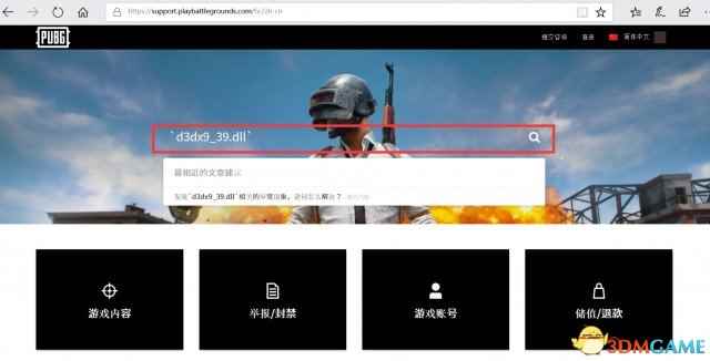 常见问题查询 我们在客服中心首页罗列了四大类型的常见问题——游戏内容、举报\封禁、游戏账号、储值\退款。欢迎大家在使用人工客服的同时也大力使用常见问题查询自助服务。 常用问题查询广泛适用于游戏内容、电脑配置等咨询内容。其优势是快捷便利。 例如:在游戏时,电脑发出`d3dx9_39.dll`报错。请将报错信息复制在搜索栏搜索。便会出现相关解答信息。再次点击搜索到的相关信息便会跳转到正式的解答页面。