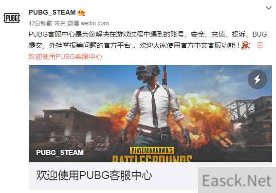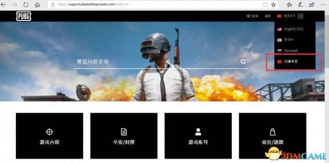 《绝地求生》Steam官博今天公布了一条好消息,《绝地求生》官方中文客服正式上线,英文差的玩家再不用担心不能详细描述外挂行为了,官方已经支持中文举报了,除了举报,《绝地求生》中文客服中心可以为玩家解决各种游戏过程遇到的问题,如账号,安全,重制,投诉,BUG提交等。 官方微博: 官方详情: PUBG客服中心(PUBG Support)官方中文客服正式上线了!您有什么关于游戏内的需求都可以用中文和客服进行反馈。 PUBG客服中心是为您解决在游戏过程中遇到的账号、安全、充值、投诉、BUG提交、外挂举报等问题的官方平台 。请认准:https://support.playbattlegrounds.com/hc/zh-cn,谨防钓鱼网站诈骗。 如何使用 在浏览器中键入PUBG客服中心网址: https://support.playbattlegrounds.com/hc/zh-cn 跳转进入官方客服网页。 语言选择 目前,客服中心语言系统已能自动匹配中文语言环境,因此不需手动勾选语言。如遇浏览器无法兼容的情况,请手动选择语言为中文。