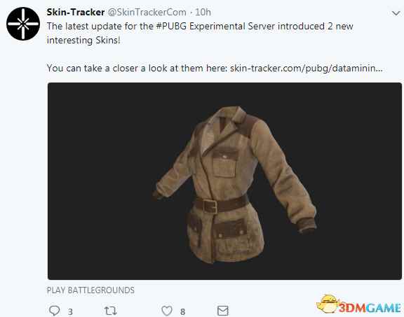 专注于爆料《绝地求生》皮肤的用户Skin-Tracker今天又为我们曝出了《绝地求生》2个有趣的新皮肤,模型资料来源于《绝地求生》测试服最新更新。从图片来,第一个皮肤是女士皮衣外套,另一个皮肤是棕色的口罩/围巾,采用休闲设计风格,看起来很漂亮。 Skin-Tracker表示不知道这些皮肤上线正式服的时间,但预测是在5月底,或者几个月后。 推特信息: