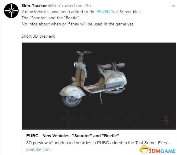 Skin-Tracker今天为我们曝光了《绝地求生》新载具3D演示,这2款新载具已经加入到了《绝地求生》测试服文件中,这两款载具分别为“小轮摩托”和“甲壳虫汽车”。目前没有信息表明载具的上线日期。 Skin-Tracker推特:2款全新载具加入到《绝地求生》测试服文件。