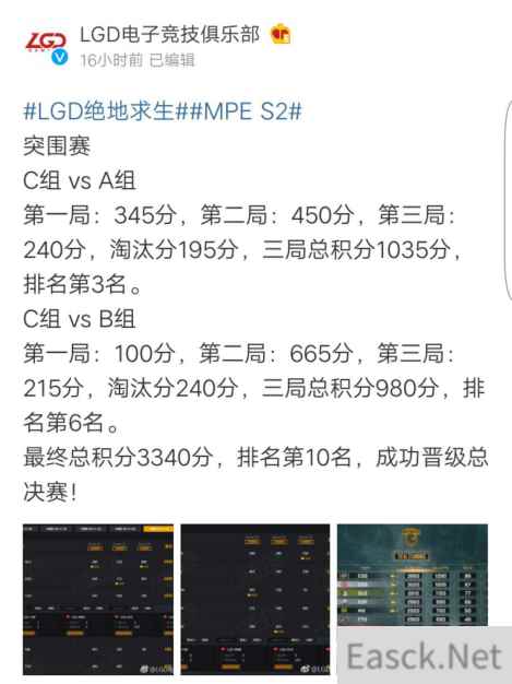 LGD战队在Mars绝地求生精英突围赛中则以总积分3340,总排名第十的优异成绩成功晋级总决赛,看来其实力也是大家有目共睹的。 Numb战队自成立起就以“职业”为梦想,作为一支草根战队,其成名十分的不容易,其曾经为了取得优异的比赛成绩每天都会训练14个小时,因而其突围成功进入最终的决赛也是努力得到回报的结果。