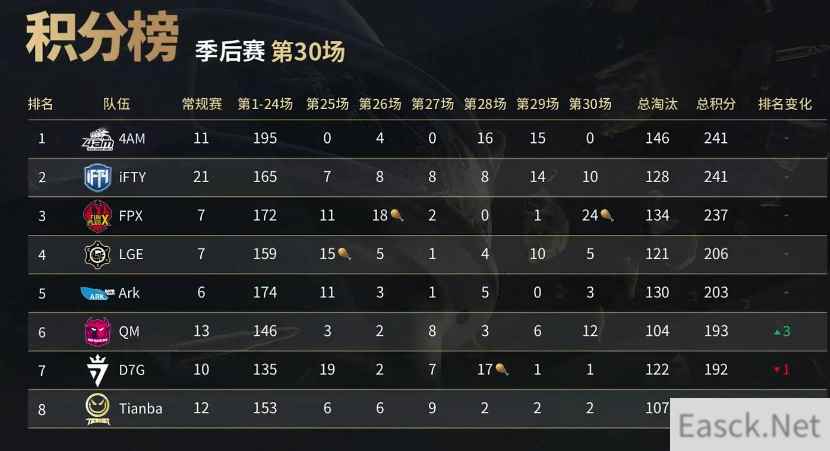 在季后赛的首日,4AM战队强势表现,两次成功获得小场胜利,获得较高的赛事积分开始领跑积分榜。虽然在季后赛第三天的较量中,由于ARK战队的强势崛起,4AM战队短暂失去了积分榜榜首的位置。但是在第四天的对抗中,4AM战队再度表现抢眼,不仅重新夺回榜首的位置,还与第二名的战队拉开20分的巨大优势,彻底巩固了自己的夺冠之路。最终,凭着出色的发挥,4AM战队的众人捧起了PCL夏季赛的冠军奖杯。