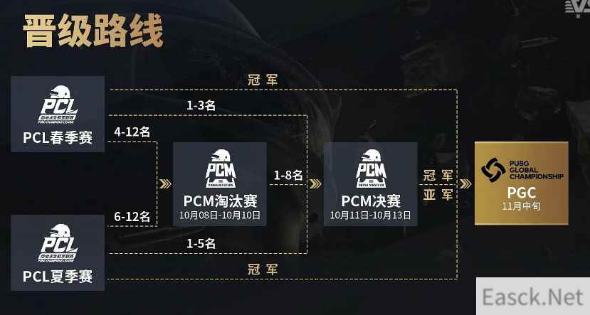 【PCM赛事蓄势待发,最后两张PGC机票究竟花落谁家】 对于参赛的各支战队而言,PCL夏季赛只是他们2019年电竞梦想的出发之地,象征着最高荣誉的PGC赛事才是他们最终圆梦的地方。目前,PGC赛事针对中国大陆赛区一共开放了四张机票名额。春季赛冠军VC战队和4AM战队已经锁定了两张机票名额,剩余两张的PGC赛事的机票名额会从即将开始的PCM赛事中产生。PCM赛事共分为淘汰赛和决赛两阶段。其中PCL春季赛排名第4到12名的战队和PCL夏季赛排名第6到12名的战队,共计16支战队获得进入PCM淘汰赛的资格。从PCM淘汰赛晋级上来的8支战队将与PCL春季赛的排名前三的战队以及PCL夏季赛的排名前五的战队在PCM决赛阶段相遇,争夺最后两个晋级PGC赛事的名额。