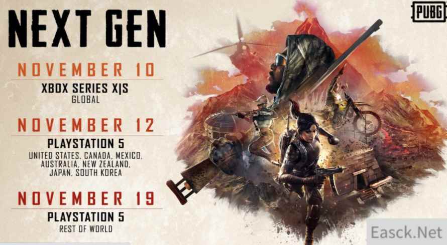 ·根据官方信息: 微软XSX/S主机版将于11月10日在全球上线。 PS5主机版将于11月12日在美国、加拿大、墨西哥、澳大利亚、新西兰、日本、韩国上线,11月19日将会在其余地区上线。 《绝地求生》现玩家无需支付额外费用就可以继承进度、道具在新世代主机游玩。 《绝地求生》次世代版支持跨平台游玩,X1/PS4/XSX/XSS/PS5的所有用户都可以一同组队吃鸡。 具体跨平台版本次世代版游戏为了优先60FPS运行,目前玩家可以采用暂时降格主机版本。 官方已经经过严谨的测试,游戏的表现非常流畅、稳定。 |