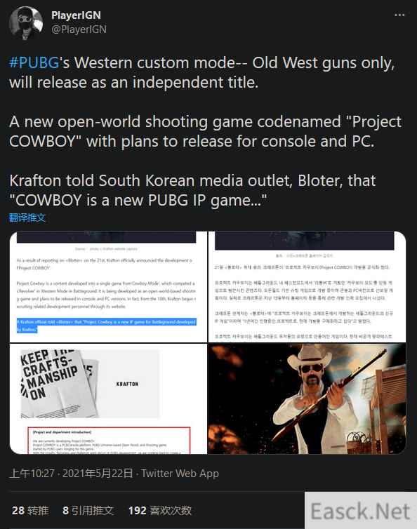 吃鸡宇宙? 《绝地求生》工作室或将开发一款西部主题游戏