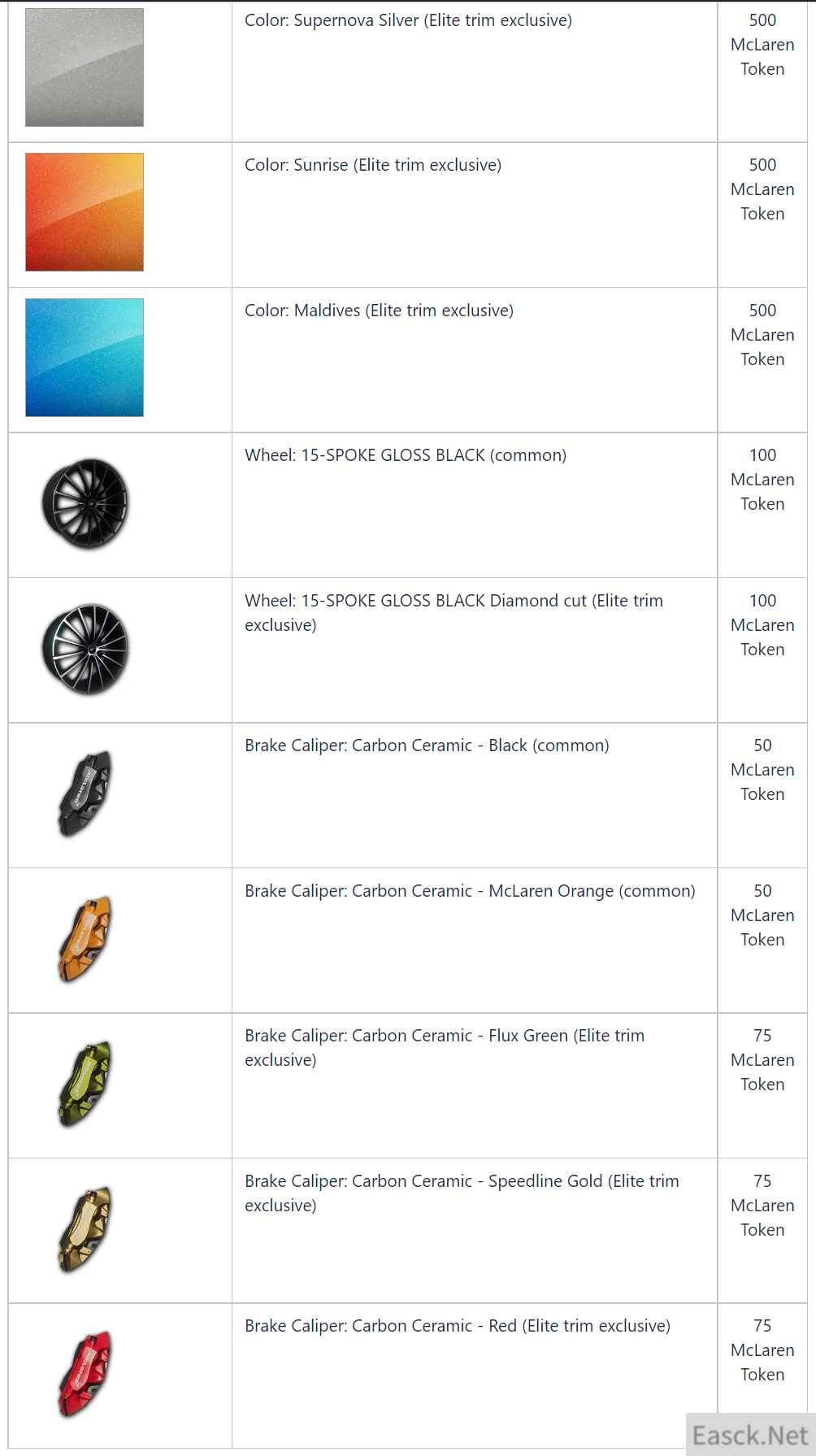 玩家可以在游戏中定制属于自己的迈凯伦 GT 跑车,包括 11 种外观颜色,2 种轮框选择和 5 种不同颜色的制动钳。