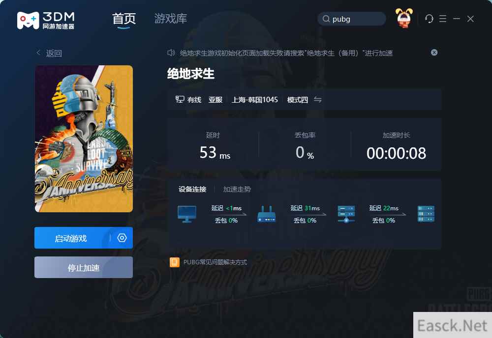 好了,以上就是PUBG公会系统玩法介绍,当然,想要在绝地求生中顺畅游玩,良好的网络是必不可少的。 直连pubg游戏与自身网络延迟高的玩家,经常会遇到卡顿或是掉线等问题,很是影响大家游戏的体感,这里为大家推荐一款好用的游戏神器:加速器,能有效帮助大家解决网络卡顿、掉线等问题,为大家带来顺畅的联机体验~ 游戏加速方法: 下载加速器后,右上角输入pubg,选择“绝地求生”专区点击“立即加速”即可进行网络加速啦~