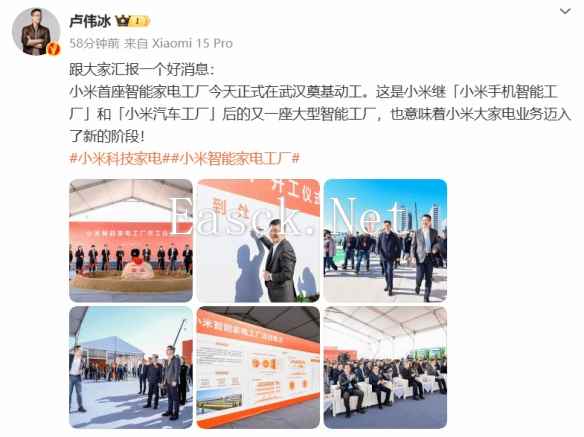 今日,小米公司宣布其首座智能家电工厂在武汉正式奠基动工。这一重要里程碑标志着小米在智能家电领域的战略布局再次升级,继“小米手机智能工厂”和“小米汽车工厂”之后,小米再次加码智能制造,为家电业务的快速发展注入新动力。