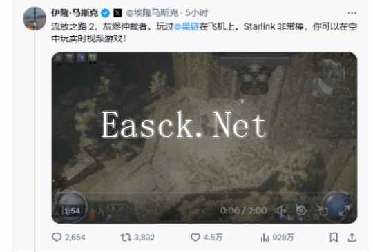 近日,马斯克再次启动了《流放之路2》,和之前不同的是,马斯克本次是使用的太空WiFI在飞机上游玩,并不断的向网友们晒出该WiFI的出色效果。