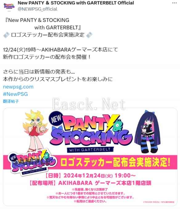 《吊带袜天使》新作动画《新吊带袜天使》确定将于12月24日公布新情报,另外当天还会在AKIHABARA Gamers总店举办贴纸分发活动。