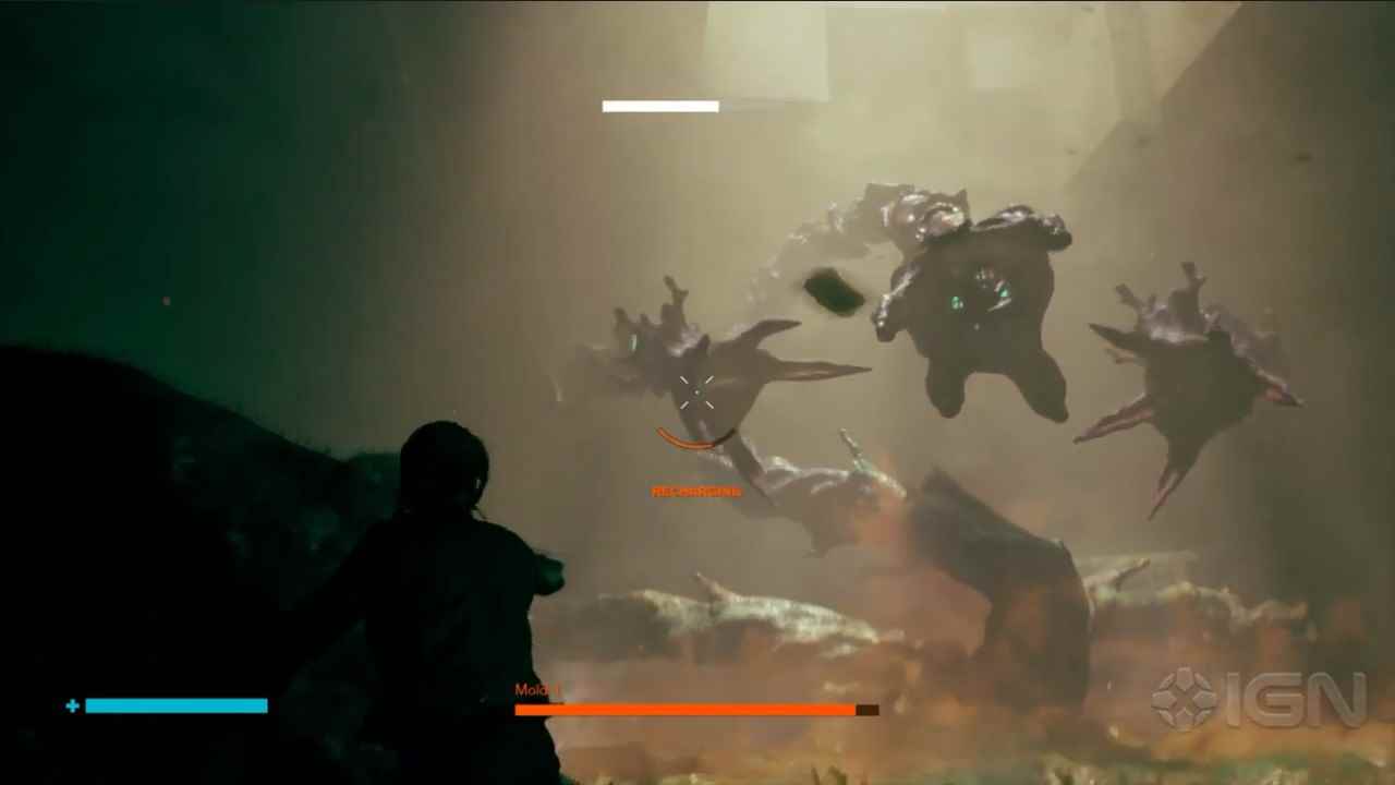 在这段支线任务演示中,女主要去采集生物样本,途中遇到了不少的“小怪”,演示中的战斗展现了女主各种意念控制能力,包括控制物体、让自己悬浮等等,其中还夹杂着射击的游戏设计。演示的后半段,还展现了一段BOSS战,战斗的时候女主还爆出了“motherfxxker”的粗口,最后女主还是用她花样百出的战斗技巧战胜了这个类似“九头蛇”的支线BOSS。 演示截图:
