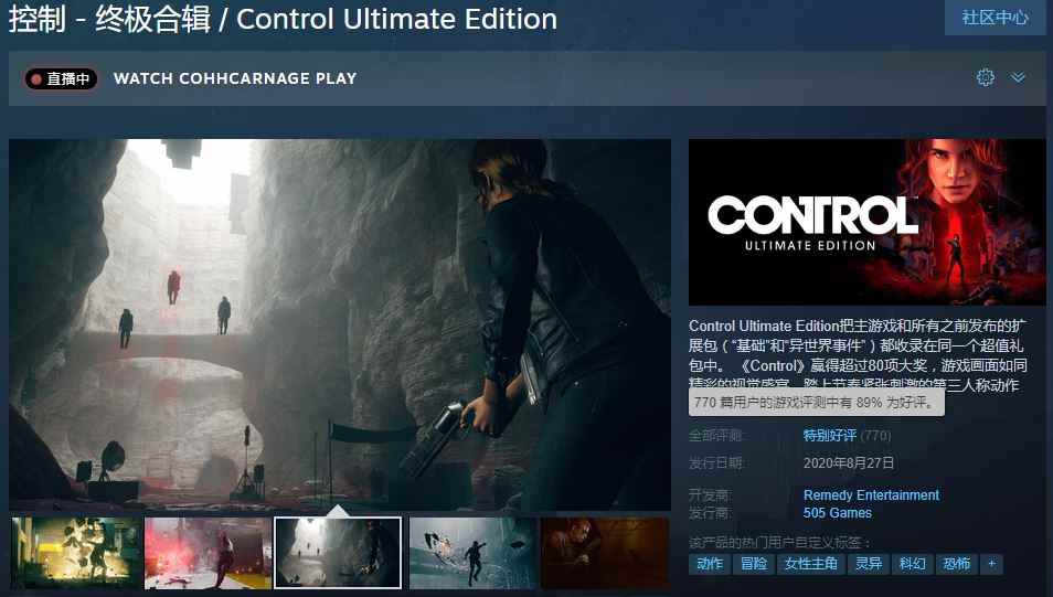 目前《控制:终极合辑》的Steam好评率为89%(特别好评):