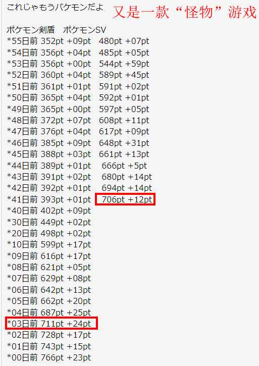 •由于宝可梦固定粉丝群体庞大,每作必买已经成为市场规律,以下数据对比来日本玩家社区统计: