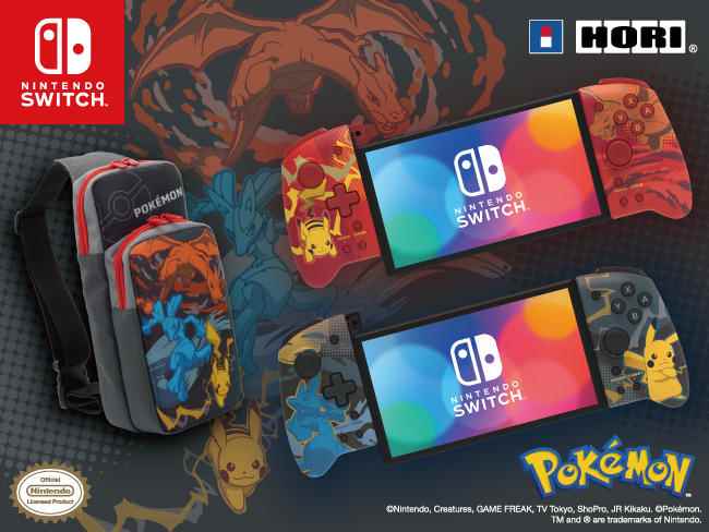 Hori 宣布将推一组新的,由出宝可梦官方授权的NS背包和手柄,预计于11月发售。在中国香港地区手柄主要有“皮卡丘和喷火龙”“路卡利欧和皮卡丘”2种配色,单个售价398港币。单肩包则是印有喷火龙、路卡利欧和皮卡丘的图案,售价198港币。