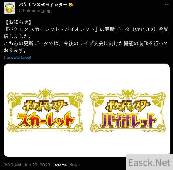 6月29日今天,宝可梦官方宣布,《宝可梦 朱/紫》最新更新Ver.1.3.2上线,具体内容暂未公开,主要调整对应直播大会功能,敬请期待。