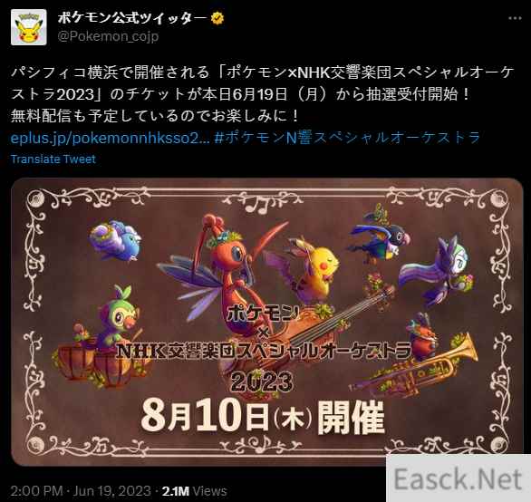 《宝可梦XNHK交响乐团特别音乐会2023》8月10日开幕