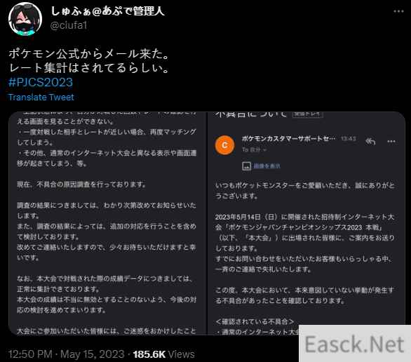 ·《PJCS2023》时宝可梦对战决定日本最强训练师的官方大赛,根据参赛玩家的年龄层分为少年组、上级组以及大师组,各个组决出前150名训练师,于5月14日举行了准决战。 ·本次的准决战将决出6月10日的最终决赛名词,然而因为游戏出现问题导致比赛出现不公平结果,令不少玩家心生不满。 ·官方表示正在认真调查问题原因,重新统计并审议数据,目前官方宣布本次大赛数据未受影响,准决赛成绩将不会无效。