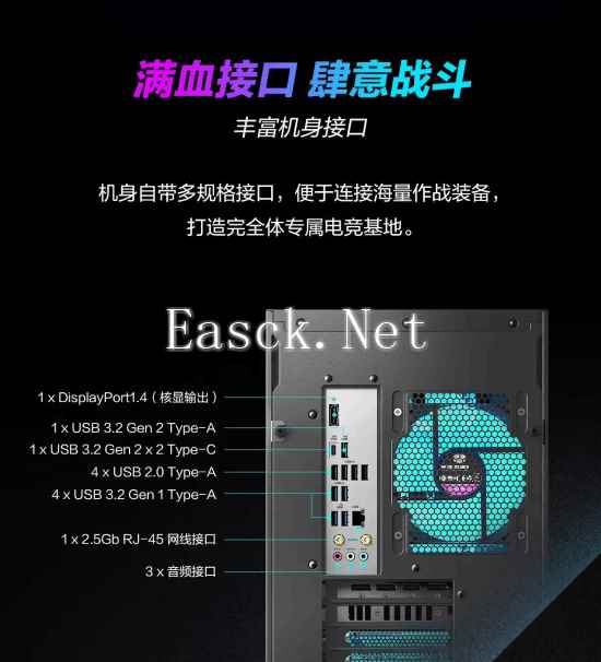 这款主机采用了 32GB 内存、2TB 固态硬盘;该机箱整体容量 58L,机身侧面采用透明玻璃设计,内置 RGB 灯效,支持免工具拆装,可通过奥创软件调参,内置四风扇及一体式水冷散热系统。