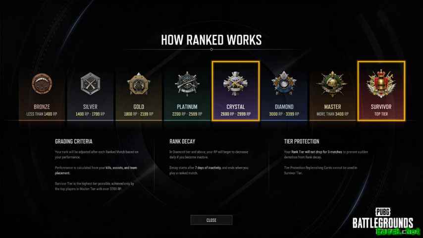 本次更新中最大的变化是竞技比赛系统的大型改版。竞技段位中加入了新的“水晶”、“生存者”段位,其中生存者段位被设定为了最高段位。竞技比赛的段位和RP也得到了合并,今后它们将不再按组队形式(双排/四排)和视角(1第人称/3第人称)进行划分,以便给玩家们提供一个更加统一且明确的目标。此外复活系统、轰炸区等原来只能在普通比赛中体验到的要素也被添加到了竞技比赛中,今后玩家们战斗时将会体验到更多战术乐趣。开发团队还根据玩家们的反馈对竞技比赛游玩积分奖励进行了优化。