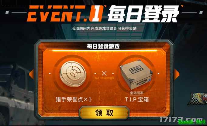 活动1:每日登录,活动期间内每天登录游戏即可获得猎手荣誉点x1及T.I.P.宝箱x1!
