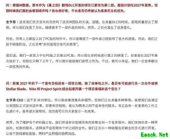 金亨泰也坦言,在初代作品中,由于资源和人力限制,许多剧情演出(尤其是过场动画)以及支线内容被迫删减。原计划中甚至包括了解释女主角Eve为何在剧情中频繁更换服装等细节,但最终因制作资源有限未能实现。 而在续作中,这些遗憾将得到弥补。《剑星2》的剧情将更加成熟,深度将超越原作中的AI与人性的冲突,拓展至更具哲学性与思辨性的主题。 另一方面,为了提升续作品质,Shift Up已经引入了先进的3D扫描设备,用于角色建模和表情捕捉,为新作打造更高质量的视觉表现。 随着PC版的热销远超预期,Shift Up也对玩家社群表达感谢,并表示将继续支持MOD社区,但呼吁玩家避免破坏游戏平衡的玩法改动。未来,团队也将更加重视玩家反馈,持续打磨并拓展其科幻美学的独特视野。 《剑星 2》尚未公布平台和具体发布日期,但这次的早期信息足以令玩家期待未来更大的冒险。