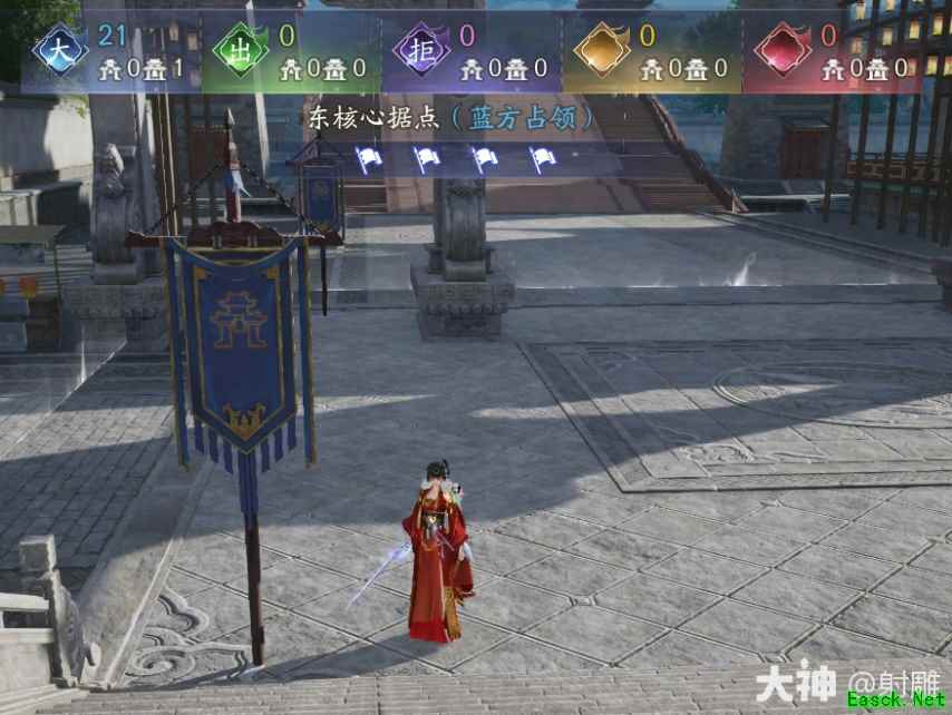 核心据点:核心据点中有4面战旗,点击战旗交互可将其变成归属于我方,一个核心据点的4面战旗全归属于我方即可完成占领,占领核心据点后会持续为我方增加较多战场积分