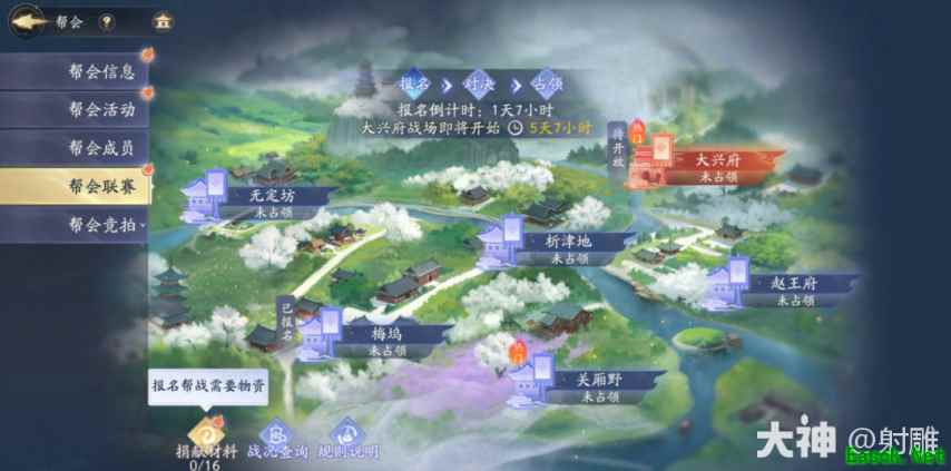 大兴府战场战斗时间为30分钟,在限定时间内,通过占领据点或核心据点、击杀战场统领等方式可增加己方战场积分,帮众可在场内自行组队合作战斗,场内上方会显示战场信息总览。
