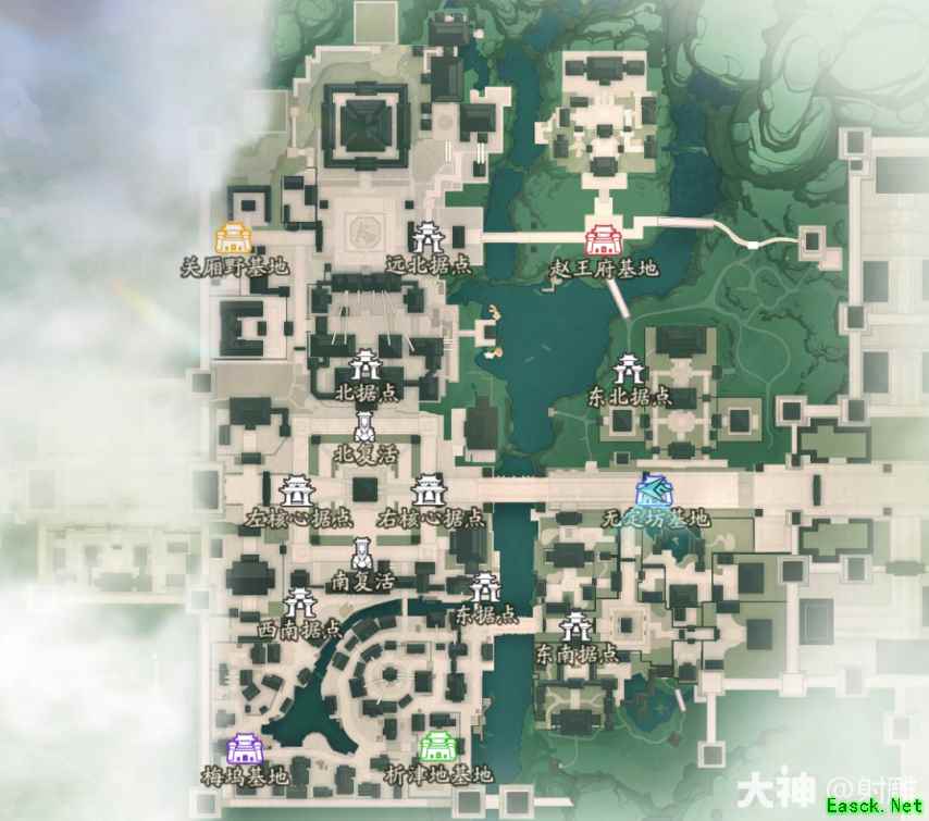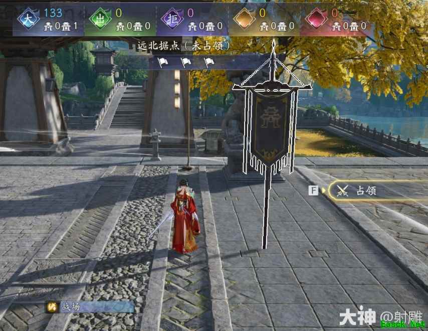 战旗:战斗开始后,每个帮会的基地附近间隔2分钟会刷出一面战旗,战旗只有对应帮会的帮众才可拾取,拾取了战旗的玩家会持续获得伤害加成,但也会持续获得受到伤害加深的效果