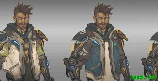 “一切始于公司内部的方案,”乔伊斯解释工作室打造“秘藏猎人”的流程。“公司里的任何人都可以提出‘秘藏猎人’的方案。我们玩这个游戏玩得太多了,以至于我们会在公司内部收集设计方案。我们会审核这些想法,然后缩小范围。通常,我们会从多个方案中提取元素,然后将它们组合在一起,打造出更酷炫的效果。之后才是真正的设计阶段。” 艺术总监亚当·梅解释说,秘藏猎人的设计通常会考虑到角色的不同方面。角色需要吸引玩家并能引起共鸣,同时要通过设计展现出他们的玩法风格和个性。