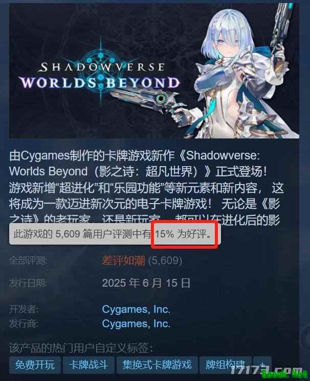 然而就在前两天,《影之诗:超凡世界》上线后,却遭到了海量差评——Steam好评率仅15%,逼近“差评之王”《三国杀》的11%。