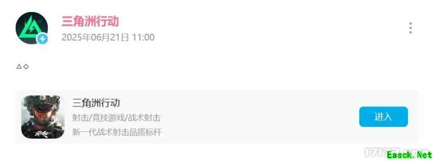 给不了解的朋友们介绍下,《三角洲行动》与另一款二次元游戏《明日方舟》分别被简称为“三角洲”与“方舟”,作为两款“形状不同”的“zhou”游戏,常被玩家们放在一起玩梗。而这两个符号正好是三角形与方形。 并且特地竖起摆放的方形,代表了《明日方舟》中贯穿剧情的源石符号,更让玩家们确信了自己的猜测。这次官号的动态,或许正是官方玩梗暗示即将与《明日方舟》联动。