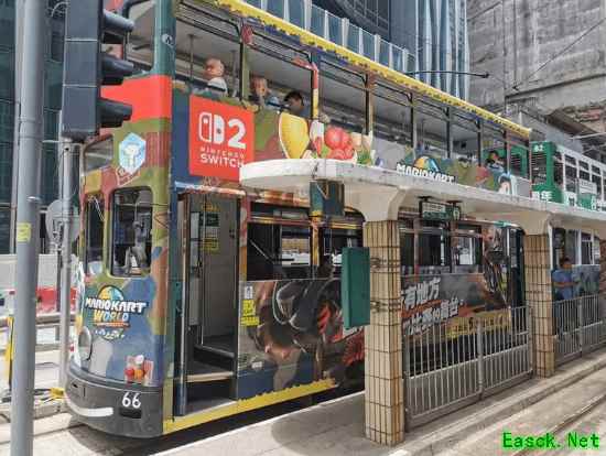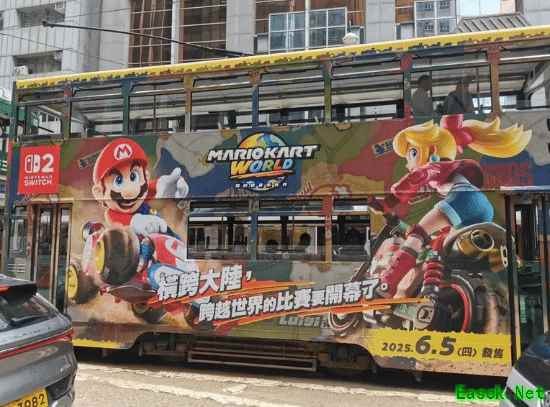 除了瑞典的列车外,任天堂的Switch 2广告攻势也已扩展到亚洲。近日,在中国香港街头,也有网友目击了一辆同样风格的双层有轨电车,上面同样包裹着Switch 2与《马里奥赛车 世界》的宣传图案。