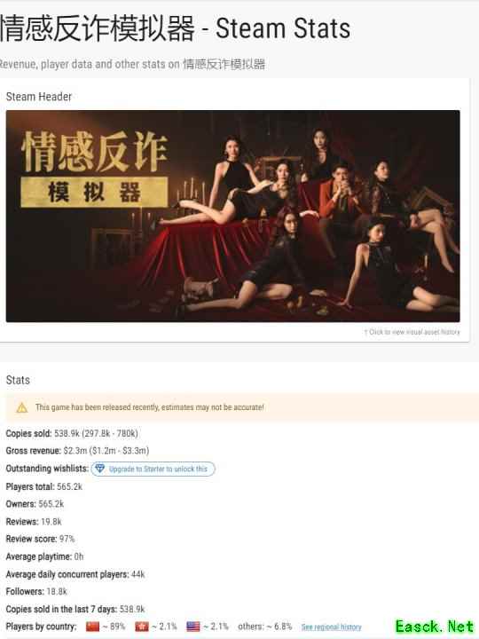 《捞女游戏》预估销量超50万份 疑似已经回本了
