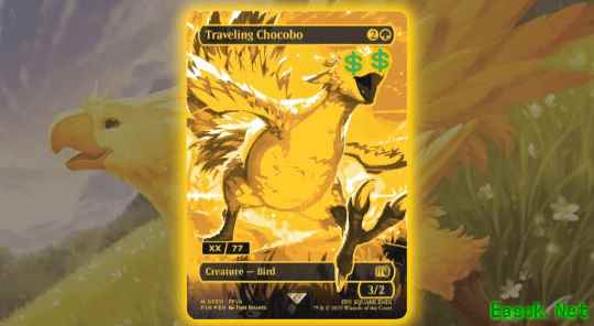 除了超级稀有的金色版本,普通版本的“旅行陆行鸟”卡也具有神话稀有度,并按《最终幻想7》经典色彩划分为黄、红、蓝、绿、黑五种变体。这些卡的售价同样不菲,单张常规变体就已炒至1500美元以上。 然而,随着炒作升温,这一扩展包也成为普通玩家最难以入手的一套产品之一。现阶段大多数店铺的游戏补充包已售罄,收藏补充包几乎只能通过第三方平台以高价购买。 >