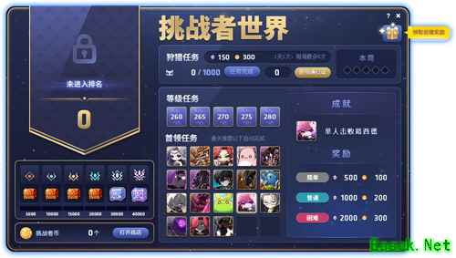 挑战者世界赛季段位挑战 2025年6月25日起至10月14日,玩家可接取挑战者世界任务,完成挑战者世界专属任务,收集挑战者点数提升段位,登顶挑战者赛季巅峰。专为挑战者准备的狩猎任务、等级任务、首领任务等三种任务,完成后可获得挑战者点数和挑战者币。收集挑战者点数后对应的段位会有所提升;通过挑战者币可以使用挑战者商店兑换精品道具。