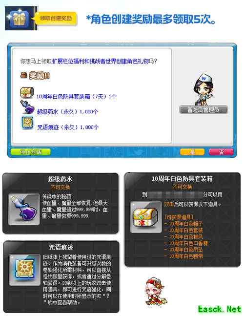 在挑战者服务器新创建的角色,可以通过挑战者世界活动领取专属角色创建奖励,同时还有扩展栏位福利:装备、消耗、其他、设置栏直接扩展至64格!