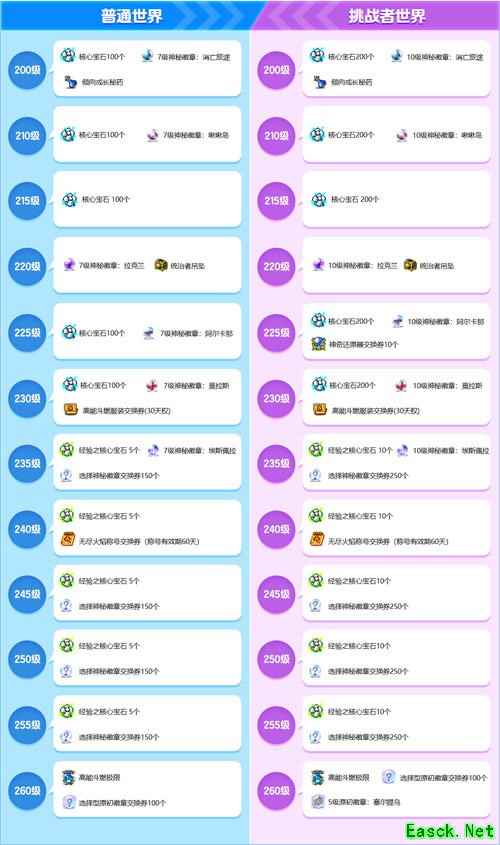 活动期间,指定高能斗燃极限角色达到对应等级时,即可获得奖励,挑战者世界和普通世界奖励不同。