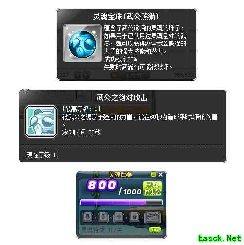 使用武公熊猫灵魂宝珠获得的[武公之绝对攻击]技能冷却时间由5分钟调整为150秒,每次释放技能所需的魂值由250点调整为200点。