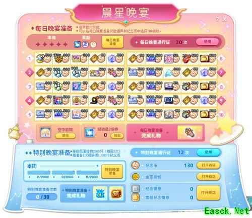 完成晨星宴会的系列活动,获得的对应纪念币可以在指定商店兑换各种超值道具!