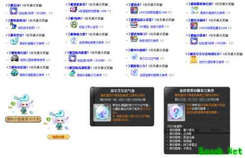 完成晨星晚宴的每日晚餐,或购买每日晚餐通行证,就能采集到晨光和星光,把它们交给盎格罗就可以为幻影装置注入晨光/星光幻影。晨光幻影会在战斗状态下帮助你,在幻影装置中注入晨光幻影,将强化攻击力/魔力之类的能力值,最多可强化到6级。星光幻影能在特殊情况下帮助你,在幻影装置中注入星光幻影,将在特殊情况下使用,最多可强化到6级。幻影强化的水平越高,强化就需要越多的晨光和星光。通过500抵用券可购买1个晨光或星光,每周每种最多购买10个晨光和星光。用于强化的晨光和星光,将无法再次回收,请慎重选择。 活动二:夏日教程 6月25日起至9月9日,玩家可参加夏日教程任务活动,为冒险岛世界勇士们准备的特别活动,参加夏日教程任务,领取丰厚奖励。