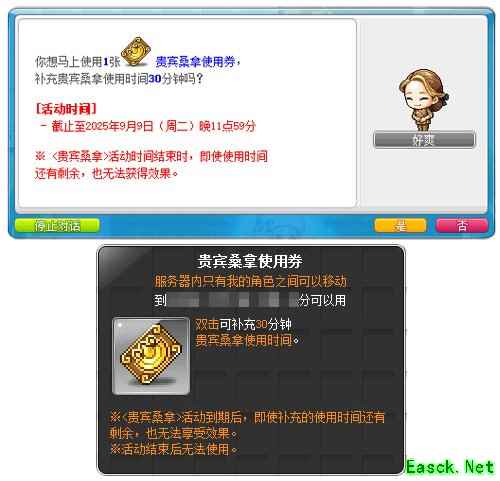 享受贵宾桑拿,需要使用3000抵用券购可购买1小时的贵宾桑拿时间,在桑拿室中获取大量经验值;在贵宾桑拿室最下方可以看到剩余使用时间;使用贵宾桑拿使用券可以补充30分钟使用时间。