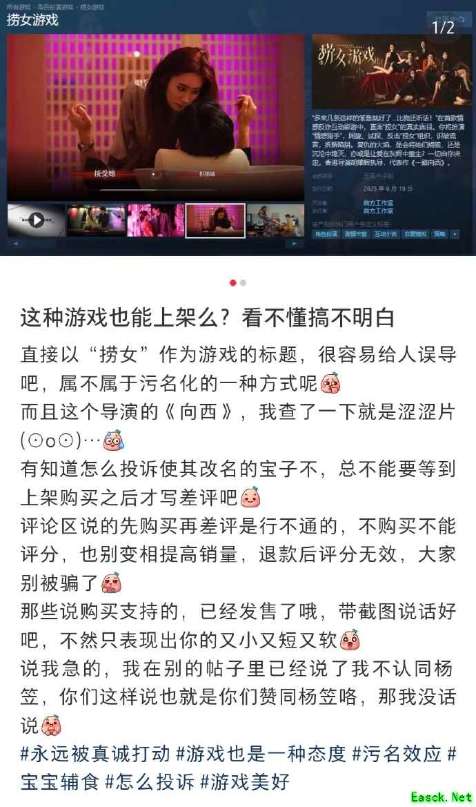 发生这样的事情倒也不意外,一是游戏标题确实扎眼;二是这些平台多以女性用户为主,当看到“辱女”字眼时难免哈气。
